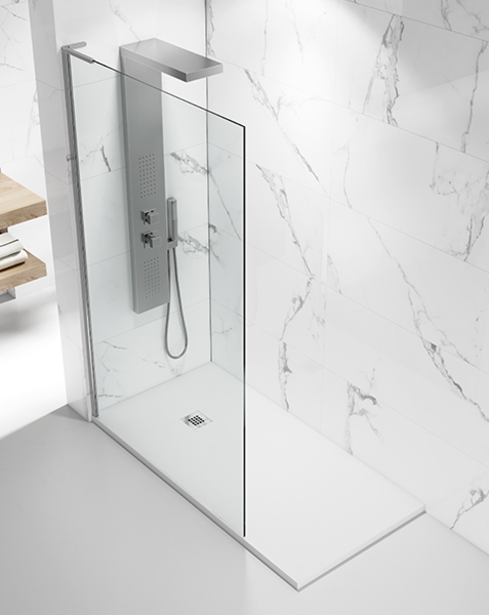 - Fixação à parede com calha em Alumínio e no topo superior com “L” em inox